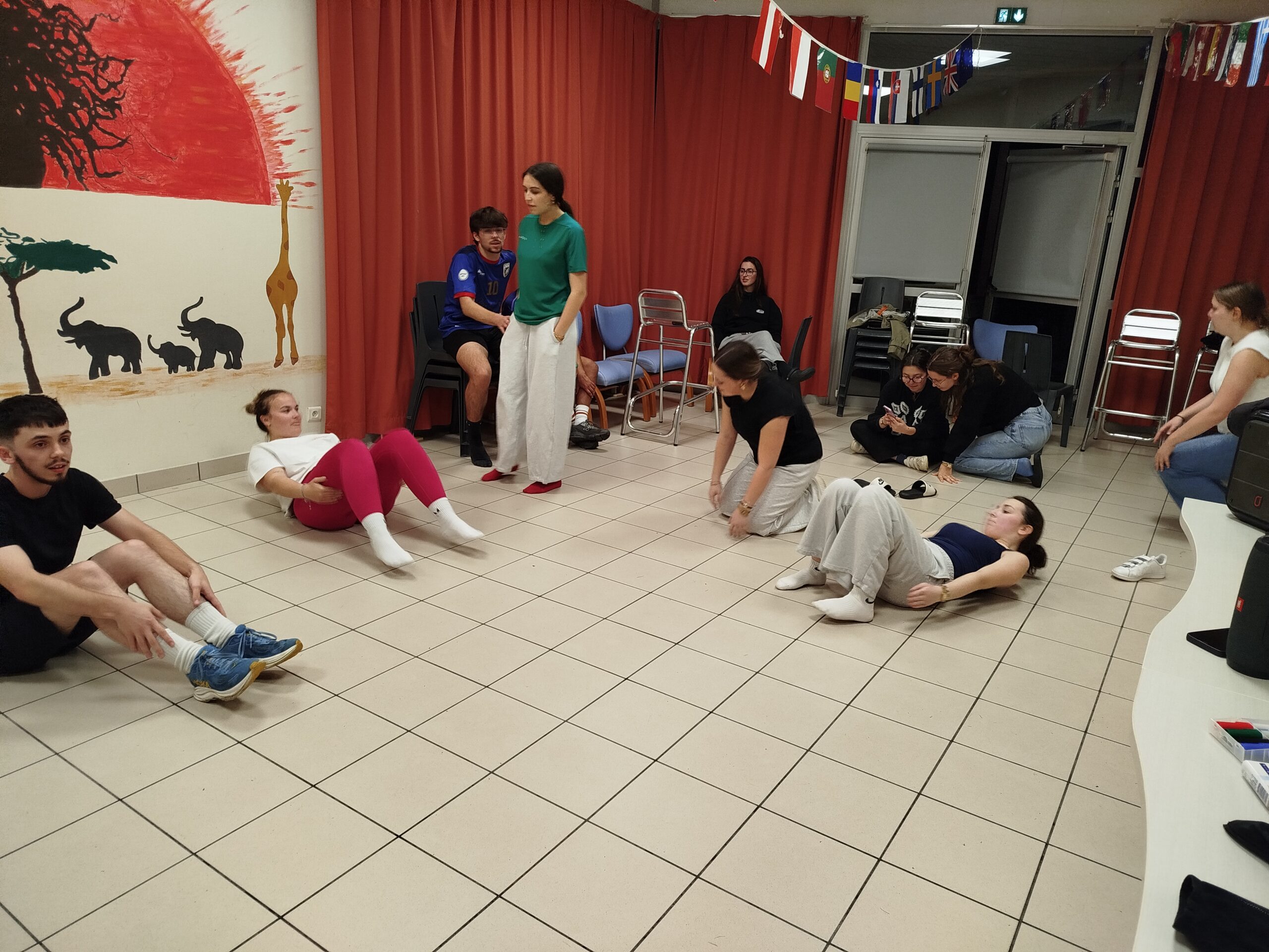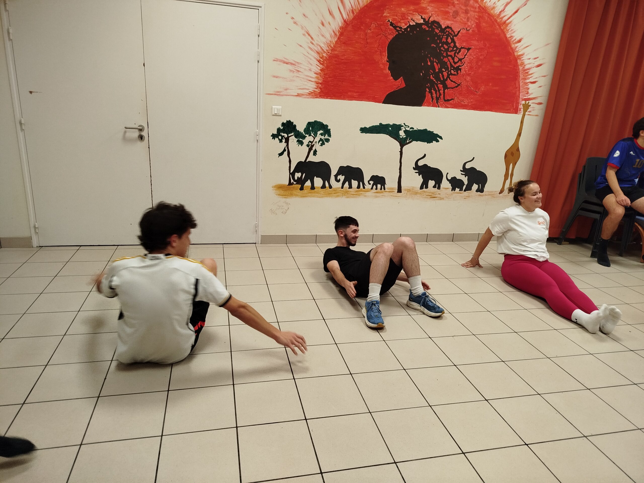 La séance est animée par deux anciens élèves de la filière (diplômés en 2025), le duo tant apprécié Brayan&Luis, revenus prouver que le sport… ça ne fait pas que transpirer, ça fait aussi rire (et parfois découvrir des muscles dont on ignorait l’existence). Chacun peut bouger à son rythme, encourager les autres et se dépasser un peu.